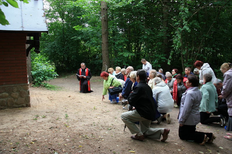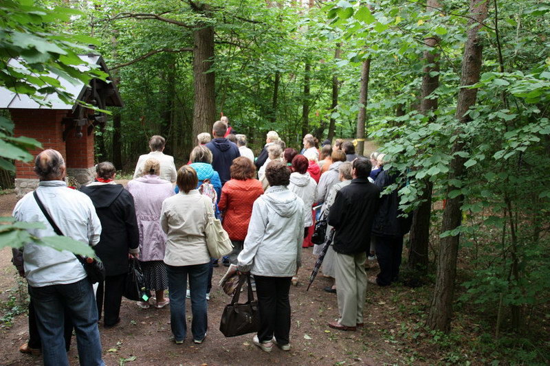 Час ішоў імкліва. І вось першы прыпынак: касцёл Маці Божай Шкаплернай у Мядзелі, сустрэча з айцом Юрыем. Разам з ім мы ідзём Крыжовым шляхам па Мядзельскай Кальварыі, якая была адбудаваны і асвечаны ў 2014 годзе. Уражвае велічны ўваход, упрыгожаны фігурай Маці Божай з Ля Салет, якая плача над грахамі людзей. Па абодва бакі ад уваходу – памятныя шыльды, звязаныя з гісторыяй аднаўлення Крыжовага шляху. На адной з іх – камень з Ізраэля, з гары Кармэль у горадзе Хайфа. Два з паловай кіламетры Крыжовага шляху, якія праходзяць праз лясны масіў Нацыянальнага парку “Нарачанскі”, праз поле і луг, кожны ішоў са сваёй інтэнцыяй, супольна молячыся. Было адчуванне, быццам хтосьці вёў нас па той дарозе, якая скончылася на гары Трох Крыжоў ля палявога алтара. Вось такі ён, шлях-дарога да Бога, які заўсёды дапамагае і чакае нас.