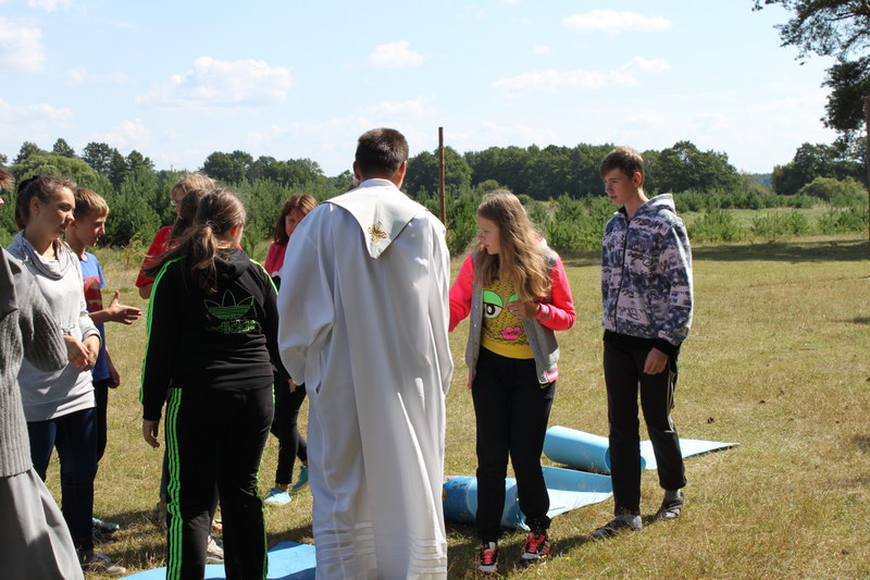 Вось і моладзь нашай парафіі мела такую магчымасць. Разам з пробашчам, кс. Пятром, сёстрамі Галінай і Янінай, з 30 ліпеня па 1 жніўня моладзь была на беразе Нёмана з палаткамі, каб адпачыць і паразважаць над сваім жыццём. Пачаткам адпачынку стала Святай Імша, адпраўленная ў нашым касцёле, падчас якой пачулі прыпавесць пра Валадарства Нябеснае, з якой можна было ўзяць шмат для разважання на гэтыя дні.